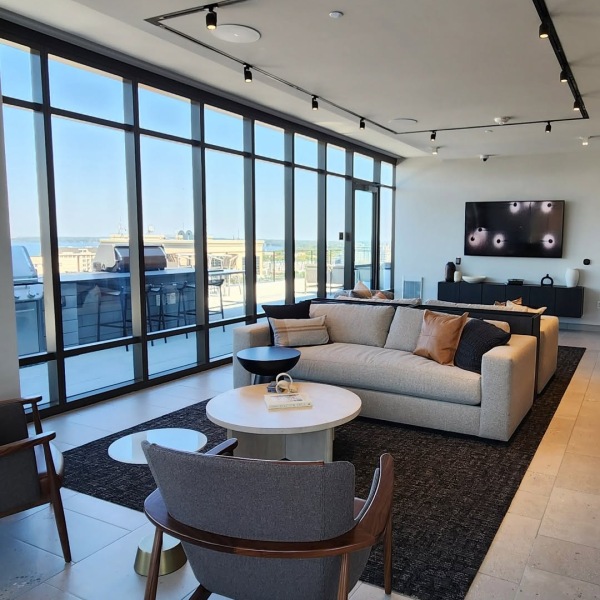 Our top-floor amenity suite features two terraces—one with a pool overlooking Lake Monona, and another with stunning views of the Capitol. Inside, residents can enjoy an elegant Capitol Lounge, a vibrant club room, private kitchen, golf simulator, and expansive fitness center, all with sweeping vistas. At ground level, our inviting outdoor promenade is lined with vibrant eateries and leads to a striking terrace with a dramatic view of the lake.